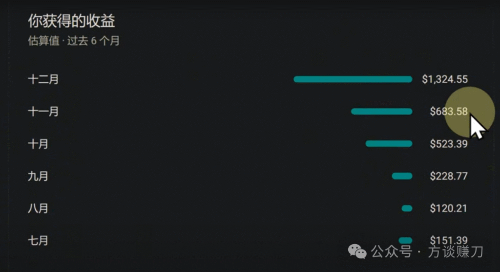 可以看到,每个月都有稳步提升。相比国内平台几乎“零收益”的环境,YouTube 的确给了创作者持续的动力。