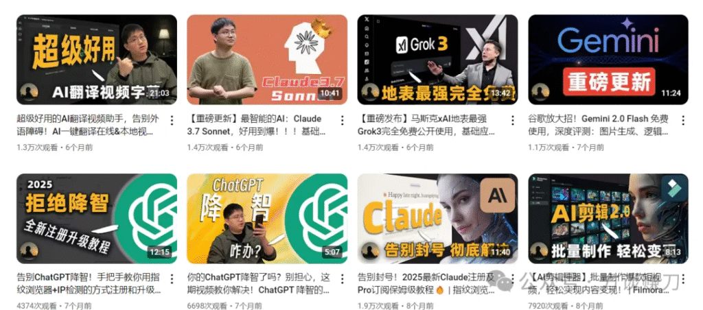 up主黄思平在前期尝试过多种题材:赚钱技巧、Vlog、时事新闻、产品开箱、游戏等,最终才在“AI相关内容”方向上稳定下来。